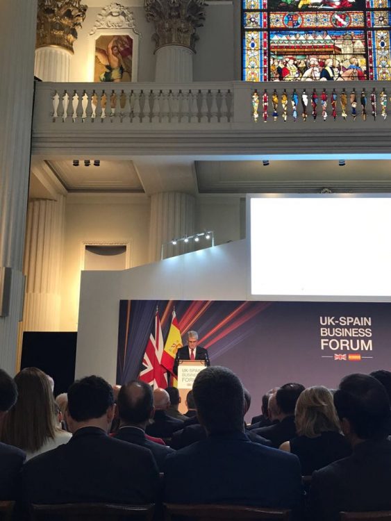 El encuentro empresarial que ha reunido representantes de grandes empresas españolas y británicas ha sido inaugurado por el alcalde de la City, Andrew Parmley seguido de discursos de la secretaria de Estado y Comercio, Dª María Luisa Poncela, del secretario de Estado y Comercio Internacional de Reino Unido Liam Fox y del Ministro Español de Asuntos Exteriores, Alfonso Dastis, con el discurso de Su Majestad el Rey Don Felipe VI para cerrar la bienvenida.